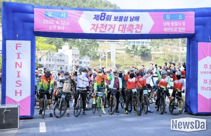 뉴스다 최광묵 기자 | 남해군의 그림 같은 해안도로를 자전거로 달리는 ‘제8회 보물섬남해 자전거대축전’ 이 지난 12일 남해군 해안도로 일원에서 열렸다.