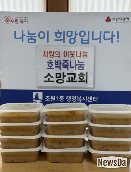 뉴스다 최광묵 기자 | 수원시 장안구 조원1동 지역사회보장협의체와 2025년 7월 업무협약을 맺은 소망교회가 지난 14일, 조원1동 관내 취약계층 20명을 위해 호박죽을 지원했다.