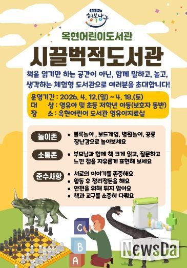 뉴스다 최광묵 기자 | 옥현어린이도서관은 도서관의 날·도서관 주간을 맞아 오는 18일까지 영유아자료실에서 독서와 놀이를 결합한 참여형 프로그램 ‘시끌벅적 도서관’을 운영하고 있다고 15일 밝혔다.