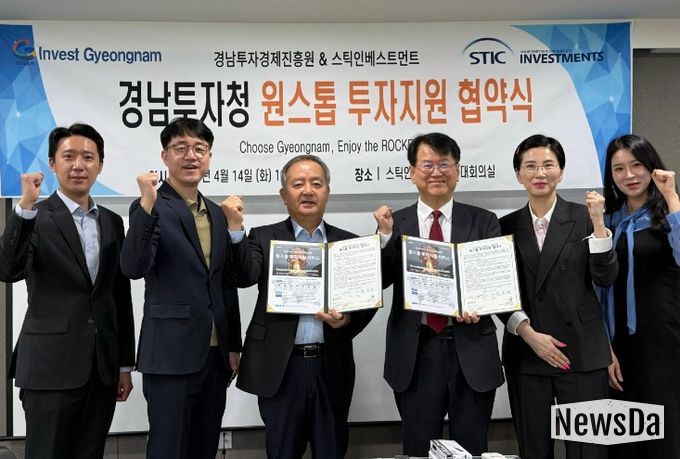 뉴스다 최광묵 기자 | 경남투자경제진흥원 부설 경남투자청은 14일 서울 소재 스틱인베스트먼트 대회의실에서 10조 원 규모의 운용자산(AUM)을 보유한 스틱인베스트먼트와 원스톱 투자지원 협약을 체결했다고 밝혔다.
