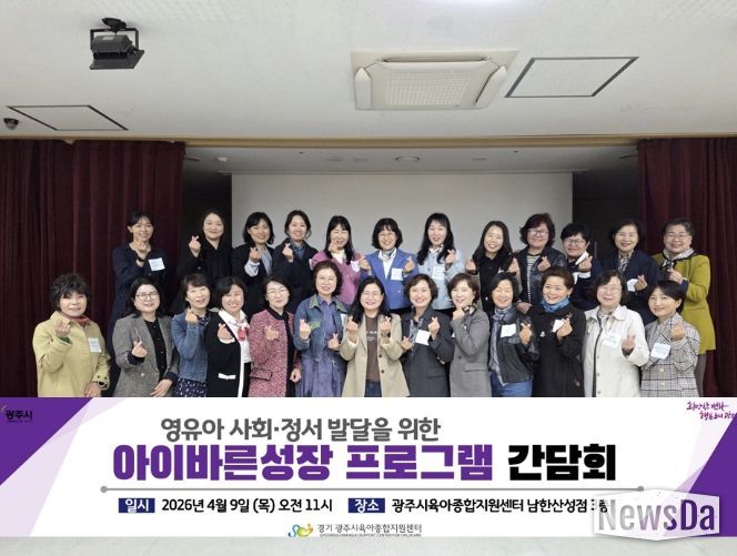 뉴스다 최광묵 기자 | 광주시 육아종합지원센터는 지난 9일 ‘아이바른성장지원사업’을 확대 추진하기 위한 ‘아이바른성장 프로그램’ 사회·정서 발달 프로그램 간담회를 개최했다.