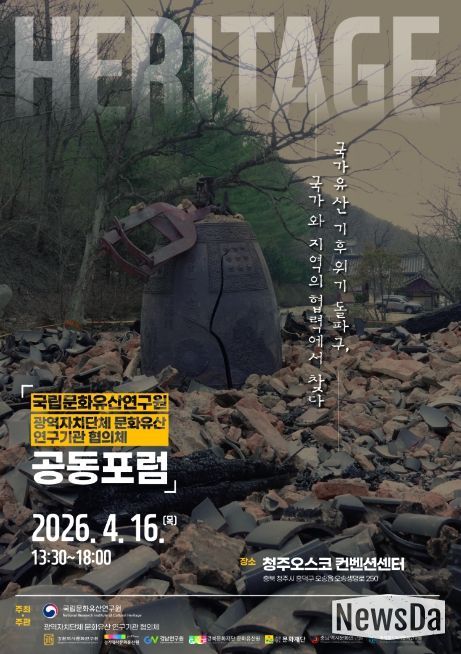 뉴스다 최광묵 기자 | 경기문화재단 경기역사문화유산원은 국립문화유산연구원과 전국 7개 광역 문화유산 연구기관(경기, 강원, 충남, 충북, 경남, 경북, 전남)과 함께 오는 4월 16일 청주 오스코(OSCO)에서 ‘국가유산 기후위기 돌파구, 국가와 지역의 협력에서 찾다’를 주제로 공동포럼을 개최한다.