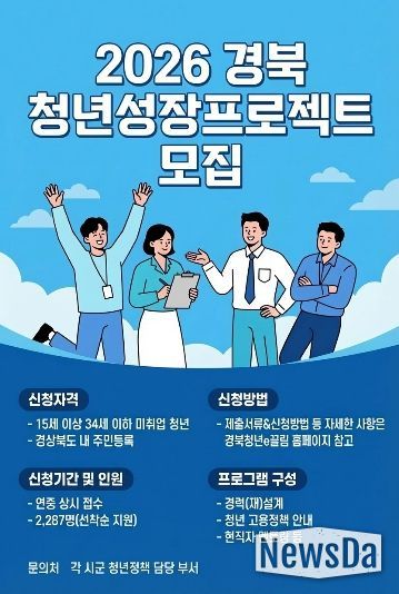 뉴스다 최광묵 기자 | 경상북도는 취업난으로 구직 의욕을 잃은 도내 미취업 청년들을 위해 올해 ‘청년성장 프로젝트’를 본격 운영한다.