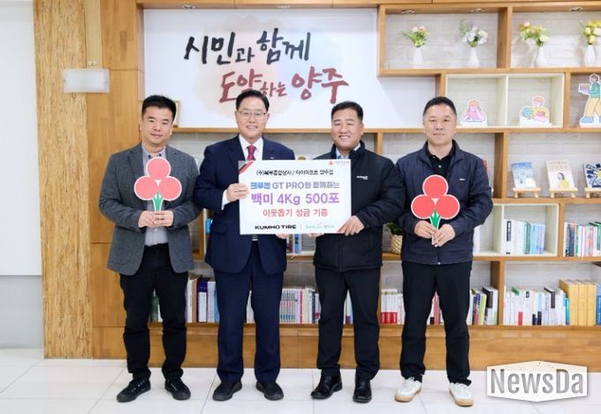 뉴스다 최광묵 기자 | 양주시가 지난 14일 시장실에서 ㈜북부종합상사 타이어프로로부터 이웃돕기 성품으로 백미 4kg 500포(800만 원 상당)를 기탁받았다.