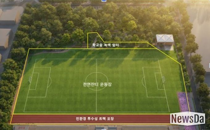 현암초에는 빗물 순환형 천연잔디 운동장이 조성된다. 빗물 순환형 천연잔디는 비가 오면 빗물을 저장해 이를 잔디 생육 등 관리에 활용하는 장치다.