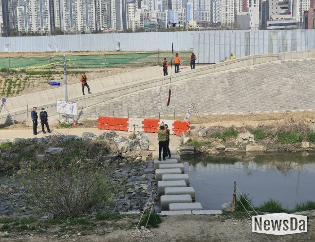 뉴스다 최광묵 기자 | 군포시는 4월 13일 안양천 일원에서 시간당 100mm 이상의 극한강우 상황을 가정한 재난 대응 및 복구 훈련을 실시했다.