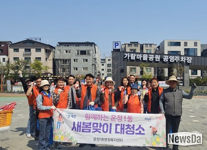 뉴스다 최광묵 기자 | 파주시 운정1동 통장협의회는 지난 15일 봄을 맞아 쾌적한 거리 환경 조성을 위해 가람상가 일대에서 청결활동을 실시했다.