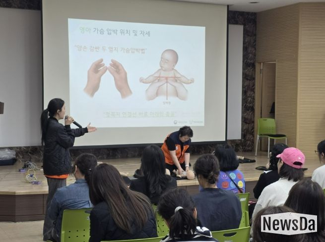 안전교육은 응급상황 발생 시 신속하게 필요한 조치를 할 수 있도록 ▲응급상황 행동요령, ▲자동심장충격기(AED) 사용법, ▲영아·유아·소아 대상 기도폐쇄 대처 방법 및 심폐소생술 실습 등으로 구성됐다.