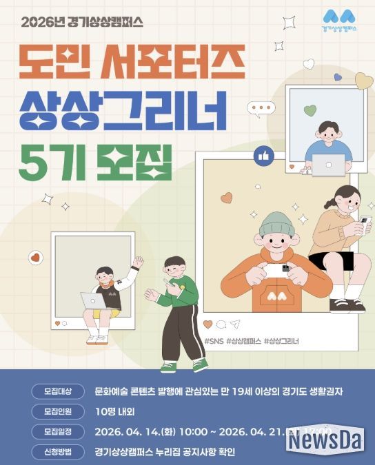 뉴스다 최광묵 기자 | 경기문화재단 경기상상캠퍼스는 오는 4월 21일까지 도민 서포터즈 ‘상상그리너’ 5기를 모집한다.