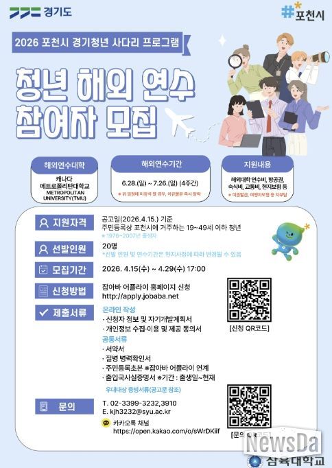 뉴스다 최광묵 기자 | 포천시는 4월 15일부터 29일까지 ’2026년 포천시 경기청년 사다리 프로그램‘ 사업 참여자를 공개 모집한다.