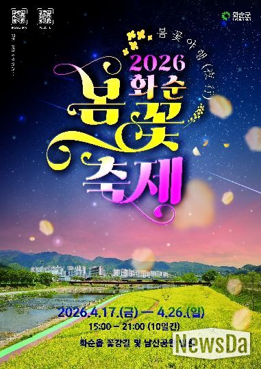 뉴스다 최광묵 기자 | 전라남도 화순군은 봄을 맞아 지역 대표 축제인 ‘2026 화순 봄꽃 축제’를 오는 4월 17일부터 26일까지 10일간 화순 꽃강길과 남산공원 일원에서 개최한다고 밝혔다.
