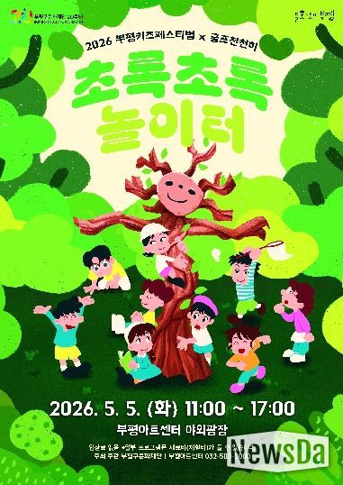 뉴스다 최광묵 기자 | 부평구문화재단은 어린이날인 5월 5일 부평아트센터 야외광장과 잔디마당에서 ‘2026 부평키즈페스티벌 × 굴포천천히’의 일환으로 ‘초록초록 놀이터’를 개최한다.