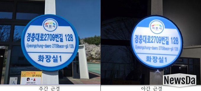 뉴스다 최광묵 기자 | 이천시는 시민들의 도로명주소 사용 편의를 높이고 안전한 야간 보행 환경을 조성하기 위해 관내 주요 공원과 하천 산책로 내 공중화장실 12개소에 조명형(LED) 건물번호판을 설치했다고 13일 밝혔다.