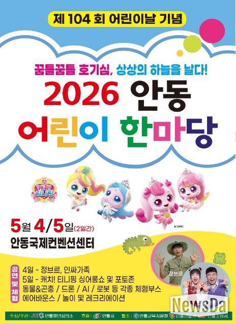 뉴스다 최광묵 기자 | 안동시와 안동청년회의소는 제104회 어린이날을 맞아, 5월 4일부터 5월 5일까지 이틀간 안동국제컨벤션센터에서 ‘2026 안동 어린이 한마당’을 개최한다고 밝혔다.