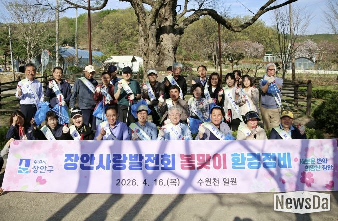 뉴스다 최광묵 기자 | 수원시 장안구의 대표 봉사단체인 장안사랑발전회가 지난 16일, 회원 30여 명과 함께 수원천변 일대에서 ‘봄맞이 환경정비’ 활동을 펼쳤다.