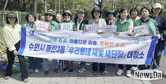 뉴스다 최광묵 기자 | 수원시 영통구 매탄3동은 지난 4월 16일 매탄3동 새마을부녀회가 지역사회의 쾌적한 환경 조성과 공동체 의식 함양을 위해 환경정화 활동에 나섰다고 밝혔다.