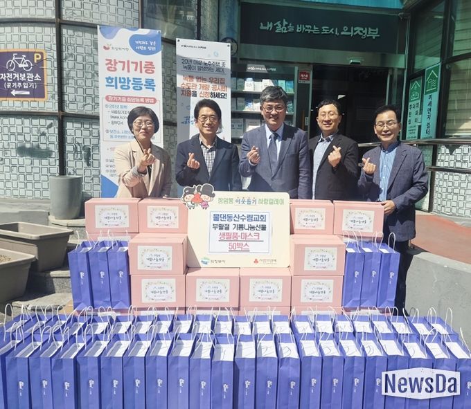 뉴스다 최광묵 기자 | 의정부시 장암동주민센터는 4월 16일 물댄동산수림교회가 부활절을 맞아 지역 내 어려운 이웃을 위해 ‘기쁨나눔선물 세트’와 마스크 50상자를 기탁했다고 밝혔다.