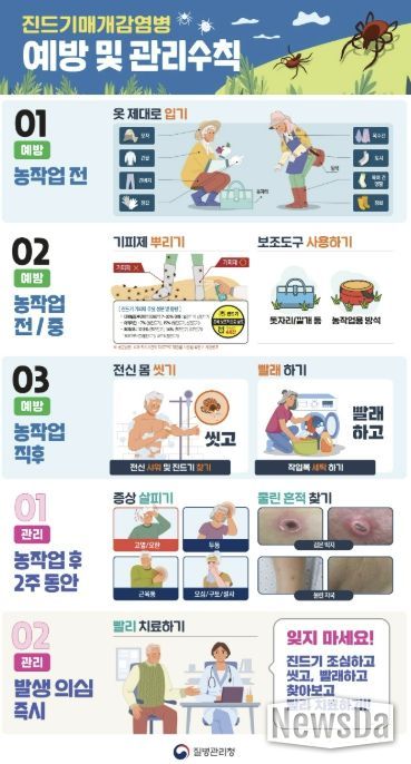 아울러 마을 방송, 안내문, 홍보물 배부 등을 통해 진드기 매개 감염병 예방 수칙을 지속적으로 안내할 예정이다.