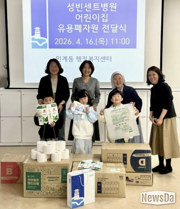뉴스다 최광묵 기자 | 수원시 팔달구 인계동은 지난 16일 오전, 성빈센트병원 어린이집으로부터 아이들이 정성껏 모은 유용 생활 폐자원을 전달받았다고 밝혔다.