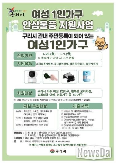 구리시 관계자는 “단순한 물품 지원을 넘어 시민들이 일상에서 심리적 안정을 느낄 수 있는 환경을 만드는 것이 이번 사업의 핵심”이라며, “앞으로도 지속적인 정보 수집과 제도 보완을 통해 더욱 촘촘한 안전망을 구축해 나가겠다.”라고 밝혔다.