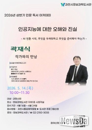 뉴스다 최광묵 기자 | 과천시정보과학도서관은 시민을 대상으로 ‘2026년 상반기 인문 독서 아카데미’를 운영한다고 밝혔다.