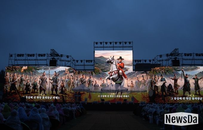 영상에서는 곽재우 장군을 비롯한 17장령 전원이 대형 스크린에 구현됐으며, 강가를 배경으로 한 전투 장면이 펼쳐지며 마치 전장 한가운데에 들어온 듯한 몰입감을 선사했다. 불길과 연기가 피어오르는 가운데 의병장들이 결연한 표정으로 전장을 바라보는 모습은 긴박한 상황을 생생하게 전달했다.
