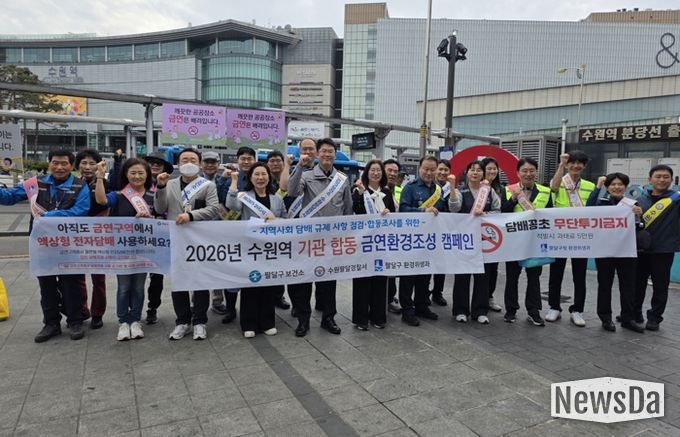 뉴스다 최광묵 기자 | 수원시 팔달구보건소는 17일 수원역 일원에서 ‘금연환경조성 합동 캠페인’을 펼쳤다.