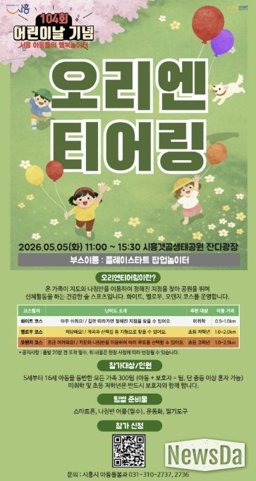 뉴스다 최광묵 기자 | 시흥시는 제104회 어린이날을 맞아 5월 5일 갯골생태공원 잔디광장에서 아동과 가족이 함께 즐길 수 있는 ‘5월 플레이스타트 팝업놀이터’를 운영한다. 이번 행사는 시흥시 어린이날 기념행사의 하나로 마련돼 행사장을 찾은 가족들에게 다채로운 프로그램으로 즐거움을 선사할 예정이다.