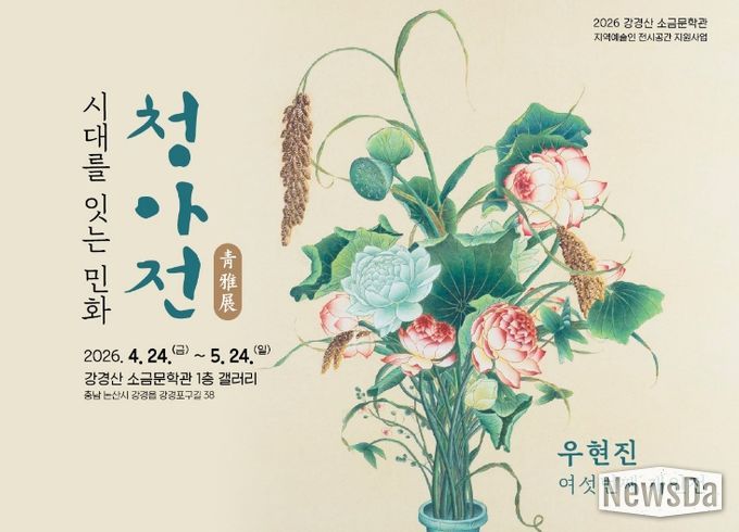 첫 번째로 개최되는 우현진 작가의 한국 전통 민화 전시는 전통 민화가 지닌 상징성과 의미를 오늘의 감각으로 다시 바라보고, 과거와 현재를 하나의 화면 안에서 이어가는 ‘시대를 잇는’ 작품들로 구성된다. 전시는 2026년 4월 24일(금)부터 5월 26일(화)까지 강경산소금문학관 지하 1층 갤러리에서 진행되며, 매주 월요일은 휴관이다.