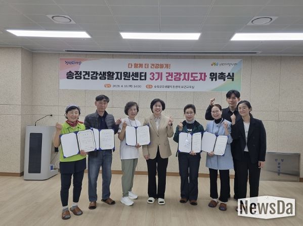 뉴스다 최광묵 기자 | 군포시 송정건강생활지원센터는 지난 4월 16일 건강지도자 양성교육 과정을 마친 주민 7명을 ‘제3기 건강지도자’로 위촉했다.