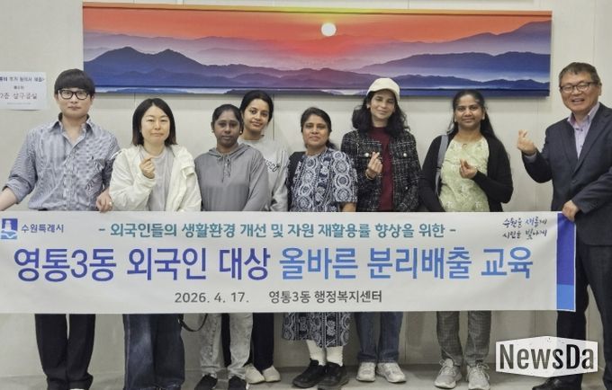 한편, 영통3동 행정복지센터는 관내 수원출입국외국인청을 방문해 ‘찾아가는 외국인 분리배출 교육’을 실시할 계획이다.