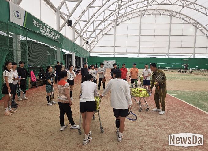 뉴스다 류대현 기자 | 진안군 테니스선수단(감독 조효익)은 지난 18일 진안군 다목적구장에서 관내 테니스 동호회원들과 함께 재능기부 레슨을 진행하며 교류의 시간을 가지는 화합의 장을 마련했다.