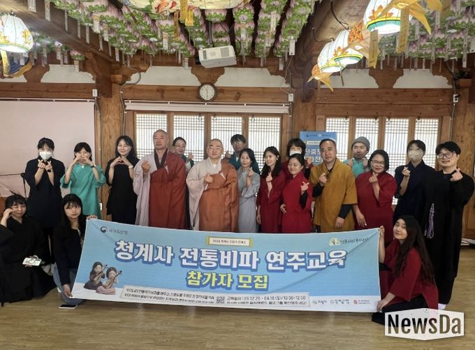 국가유산청의 ‘전통산사 국가유산 활용 공모 사업’으로 진행된 ‘신중도 속 비파천인들’은 청계사 극락보전 내 신중도(경기도 유형문화유산)에서 볼 수 있는 우리나라 전통악기 ‘비파’를 배우는 연주자 양성 교육으로, 2022년부터 올해까지 총 56명의 수료생을 배출했다.