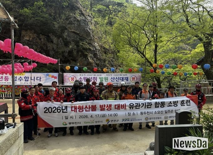 뉴스다 최광묵 기자 | 동두천시는 지난 17일 소요산 일주문 일대에서 대형 산불 발생에 대비한 유관기관 합동 소방훈련을 실시했다.