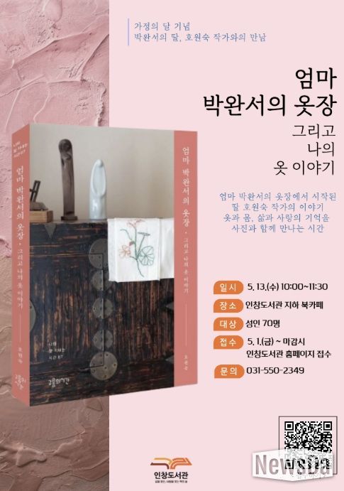 뉴스다 최광묵 기자 | 구리시립도서관은 '호원숙 작가와의 만남 ‘엄마 박완서의 옷장, 그리고 나의 이야기’' 참여 신청을 오는 5월 1일부터 접수한다고 밝혔다.