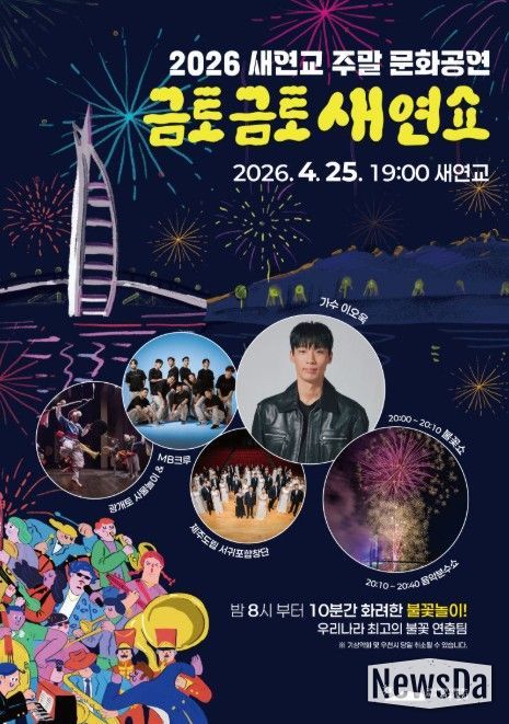 뉴스다 최광묵 기자 | 서귀포시 대표 야간관광이벤트인 ‘금토금토 새연쇼’의 개막공연이 4월 25일 새연교 일원에서 개최된다. 개막일이 바로 앞으로 다가오면서, 시민들과 관광객, 지역상인들의 관심이 높아지고 있다.