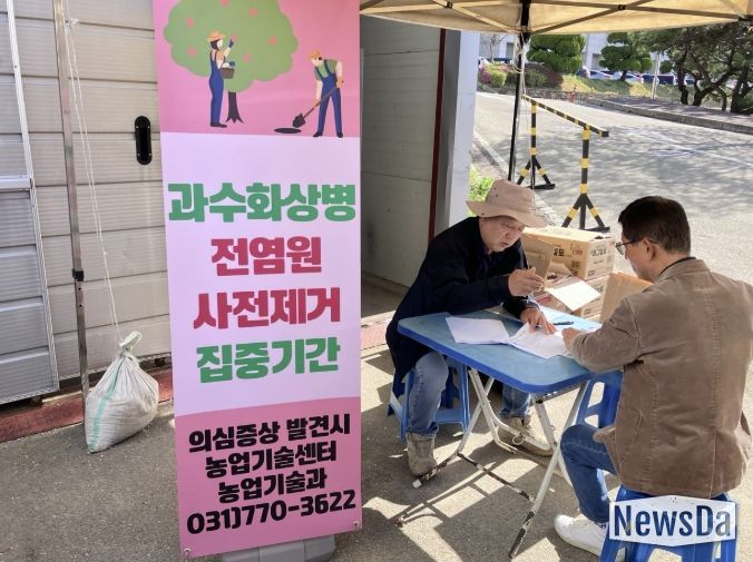 이에 군은 개화기 사용 등록 약제를 활용한 단계적 방제 체계를 바탕으로 재배 농가에 약제를 공급하고, 시기에 맞춘 적기 살포를 안내하고 있다. 이번 조치는 개화기 감염원을 사전에 차단하고 안정적인 과원 관리를 지원하기 위해 추진됐다.