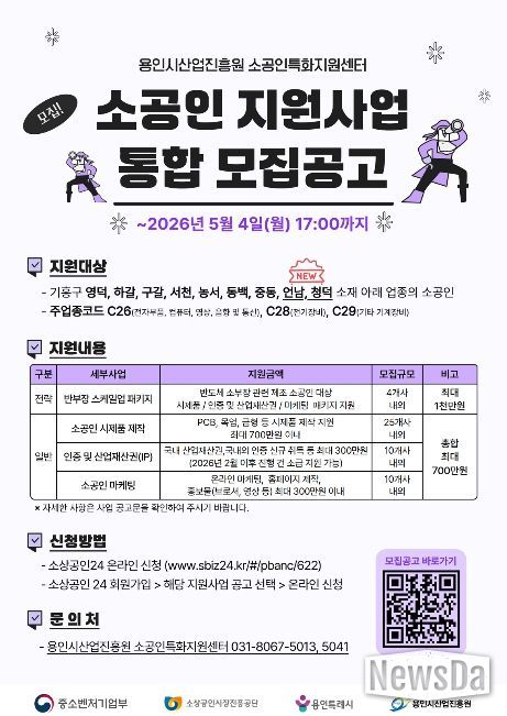 뉴스다 최광묵 기자 | 용인시산업진흥원 소공인특화지원센터는 용인시 소재 소공인의 경쟁력 강화를 위해 소공인 지원사업을 본격 추진하고, 참여기업 총 49개사를 모집한다고 밝혔다.