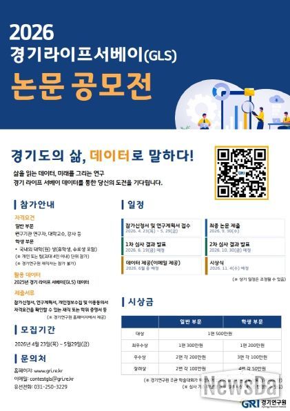 경기연구원은 이번 조사를 통해 확보한 대규모 데이터를 기반으로 데이터 중심의 과학적 행정을 뒷받침하고, 증거 기반 연구 역량을 한층 강화하는 데 주력할 방침이다. 연구 데이터의 지속가능성을 확보하고 창의적인 분석 아이디어를 통해 정책 활용도를 높이기 위해 ‘2026년 경기 라이프 서베이(GLS) 논문 공모전’을 개최할 예정이며, 이를 통해 도출된 제안과 분석 결과를 실질적인 정책 근거자료로 활용할 계획이다.