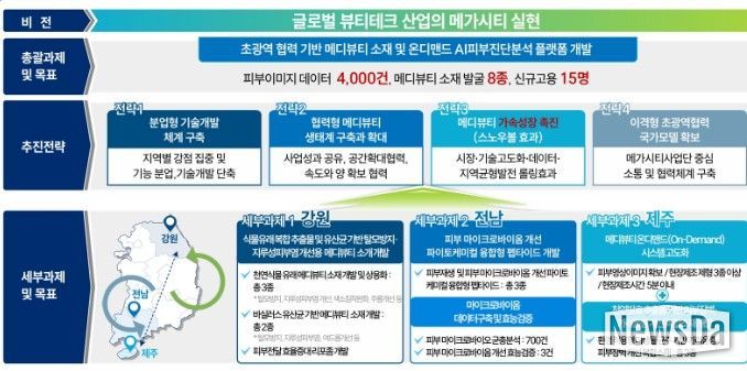 주요 사업 내용은 ▲지역특화 바이오소재 기반 고기능성 메디뷰티 소재 개발 ▲피부 데이터 표준화와 실시간 통합관리 플랫폼 구축 ▲개인별 피부 데이터 기반 최적 뷰티소재 추천 AI 모델 개발 등이다.