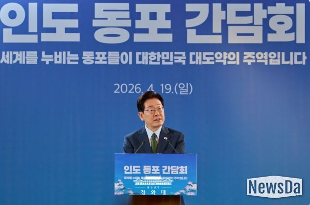 이 대통령도 고(故) 최인훈 작가 소설 '광장'을 언급하며, "인도 동포 사회는 한국전쟁 이후 정착한 전쟁포로 등 1세대의 헌신을 바탕으로 오늘날 남북 동포들이 함께 살아가는 탄탄한 공동체로 성장했다"며 동포들을 격려했다.