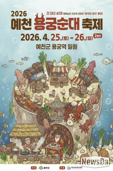 뉴스다 최광묵 기자 | 예천군의 대표 향토 먹거리 축제인 '2026 예천 용궁순대축제'가 오는 4월 25일부터 26일까지 이틀간 용궁역 일원에서 화려하게 펼쳐진다.