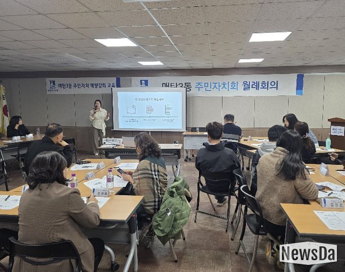 교육은 4월 20일 매탄3동을 시작으로 6월 25일 서둔동까지 순차적으로 진행한다. 동별로 전문 강사가 찾아가 참여형 교육을 운영한다. 이번 과정은 주민자치회 활동에 바로 적용할 수 있도록 실습과 분임 토의를 중심으로 구성했다.