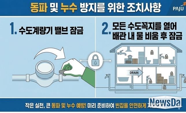 뉴스다 최광묵 기자 | 파주시가 겨울철 한파와 여름철 집중호우로 반복되는 빈집(3개월 이상 수도 사용량이 없는 수용가) 수도 누수 문제 해결에 본격적으로 나선다.