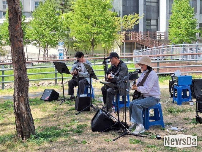 뉴스다 최광묵 기자 | 의정부시 송산3동행정복지센터는 4월 18일 민락 두물머리쉼터에서 주민 힐링을 위한 ‘통기타 버스킹 공연’을 개최했다.