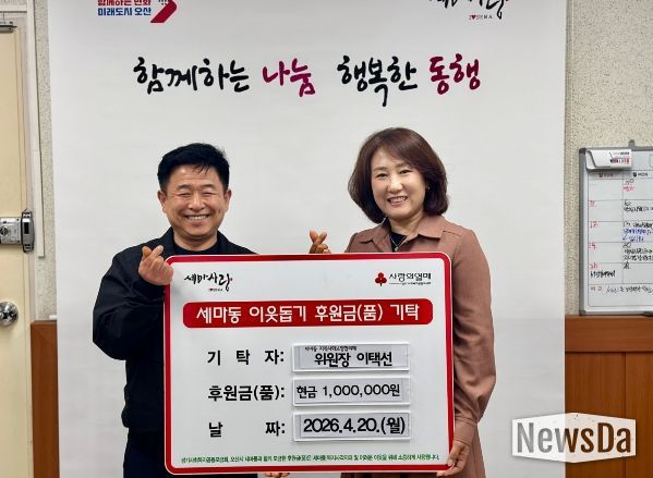 유미정 세마동장은 “매년 잊지 않고 따뜻한 나눔을 실천해주시는 이택선 위원장님께 깊이 감사드린다”며 “기탁해주신 성금은 도움이 필요한 이웃들에게 소중히 전달하겠다”고 말했다.