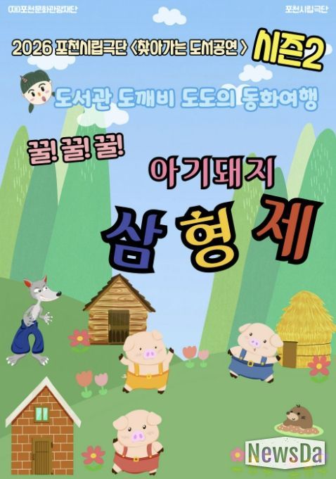 이번 시즌2 공연은 '꿀!꿀!꿀! 아기돼지 삼형제'로, 오는 4월 27일부터 6월 26일까지 면암중앙도서관, 소흘도서관, 가산도서관, 선단도서관, 영북도서관, 일동도서관 등 포천시 관내 시립도서관을 거점으로 진행된다.