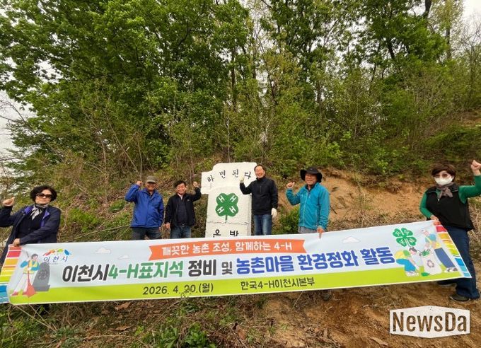 뉴스다 최광묵 기자 | 한국4-H이천시본부는 지난 20일 이천시 일원에서 회원 10명이 참여한 가운데 4-H 표지석 정비와 마을 환경정화 활동을 실시했다. 이는 지역 내 4-H 표지석의 체계적인 관리와 쾌적한 마을환경 조성을 위해 추진됐다.
