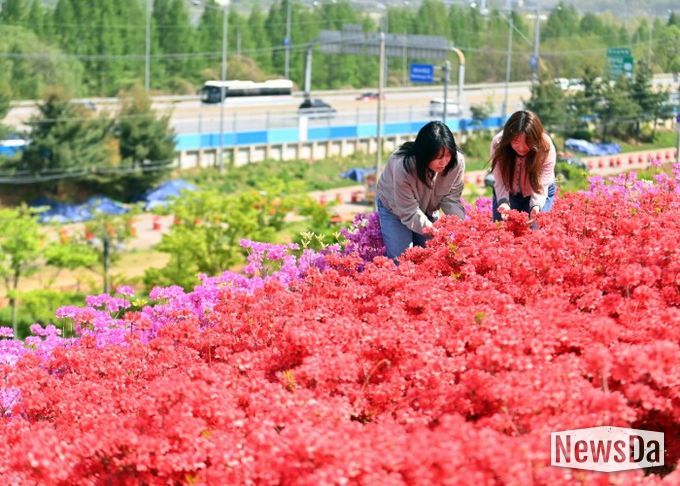 약 1만 1천㎡ 부지를 가득 채운 영산홍은 잎보다 꽃이 먼저 피어나는 특성 덕에 빈틈없는 붉은 빛을 선사한다. 꽃길 어디서든 카메라만 대면 ‘인생 사진’을 건질 수 있다는 입소문이 퍼지면서 인스타그램과 블로그 등 사회관계망서비스(SNS)에서도 반응이 뜨겁다.