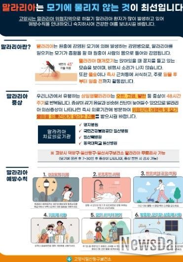 뉴스다 최광묵 기자 | 고양특례시 일산동구보건소는 오는 25일 세계 말라리아의 날을 맞아 예방수칙을 준수하고 감염을 주의할 것을 21일 당부했다.